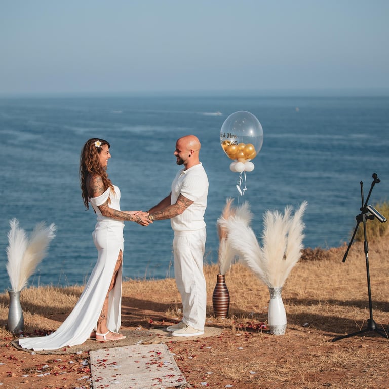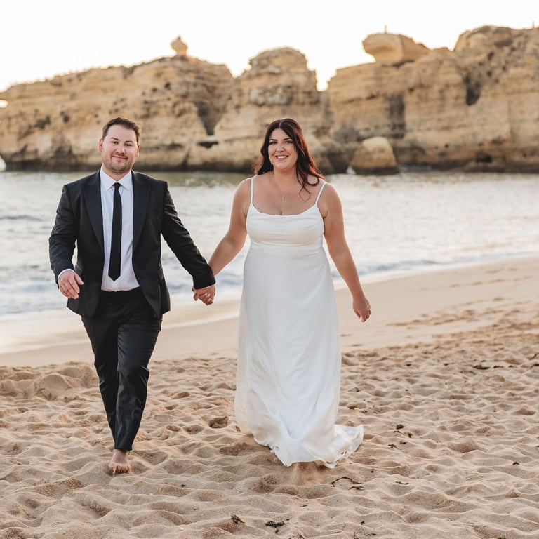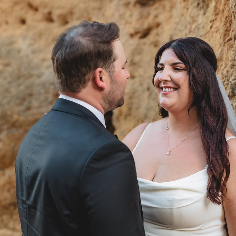 Wedding photography in the Algarve has a particular atmosphere. Golden cliffs, soft light, and the ocean always close by. It’s beautiful, imperfect, and full of emotion.