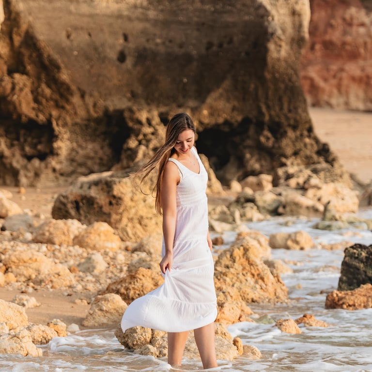 A confidence photoshoot on the Algarve coast is a relaxed, uplifting experience designed to help you feel comfortable, confident, and at home in your own skin. I’m here to make it as relaxing and fun as possible so you can feel at ease. And I’ll show you the best spots in the Algarve which will be the most stunning background.