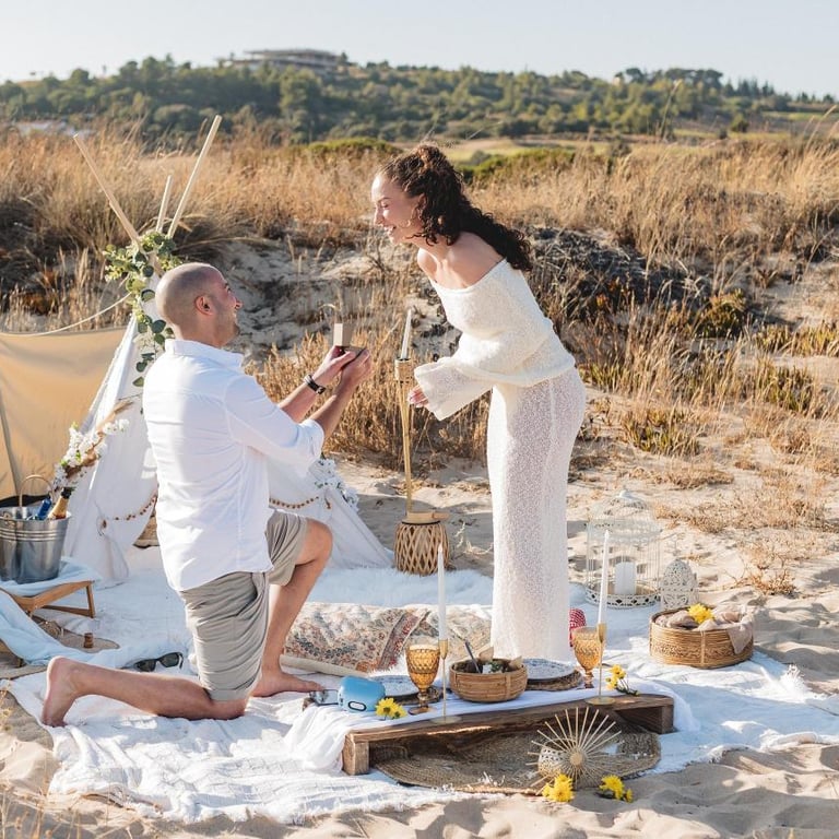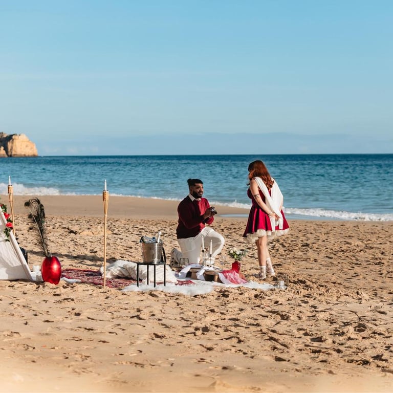 My role is to help you plan the proposal clearly and calmly, stay discreet on the day, and capture the moment as it happens, without interrupting it. If you want to include beautiful decorations and refreshments, you can also check out Secret Events Algarve.